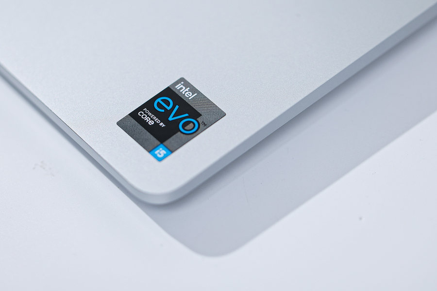 右侧掌托上面贴有“英特尔Evo平台认证”的品牌贴纸。看到贴有“英特尔Evo平台认证”品牌贴纸的移动PC,大家放心购买就好了。它代表了这款移动PC具备当今卓越的性能表现,是英特尔为消费者们精挑细选的生产力工具。