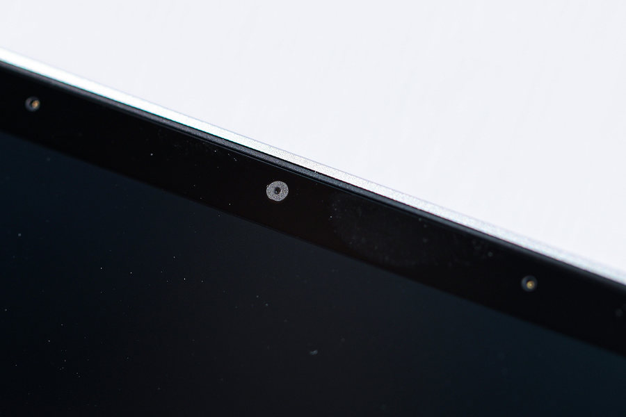屏幕上边框配备有摄像头和麦克风识音口,便于会议视频或者上网课使用。