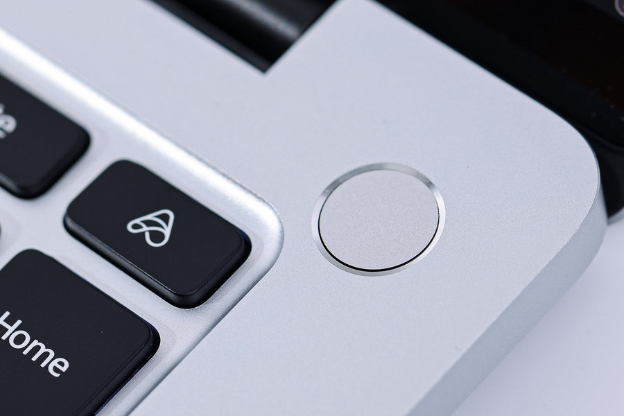 开机键位于键盘面右前方。同时,这枚开机键还集成了指纹识别器,用户利用它可以疾速解锁电脑。