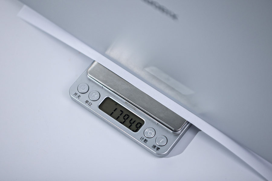 在轻薄便携方面,小米笔记本Pro15增强版做的也比较不错。经过笔者实测,它的机身重量约为1.795千克。
