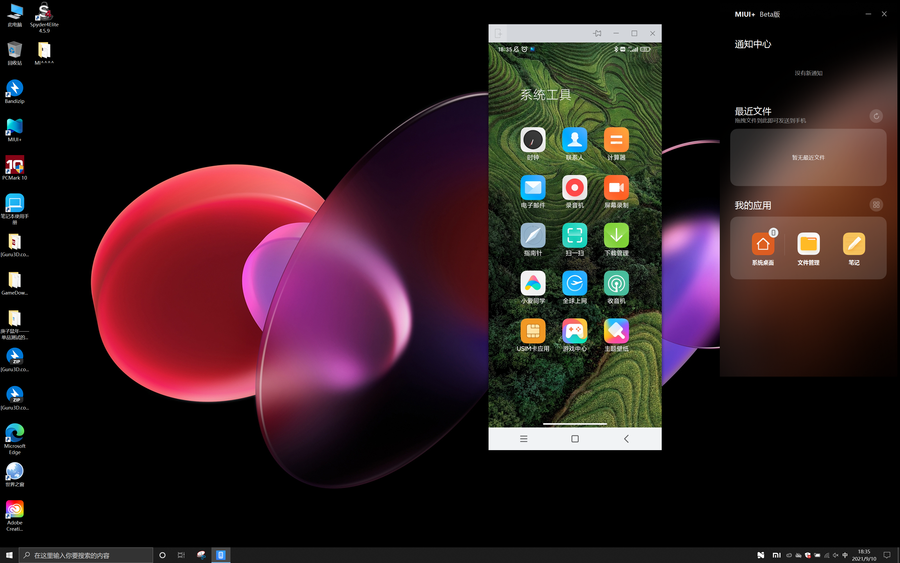 例如小米笔记本Pro15增强版与小米手机之间的连接。连接好之后,小米手机的界面窗口便会显示在小米笔记本Pro15增强版的屏幕上,用户们利用鼠标便可以在两者之间轻松互传文件了。
