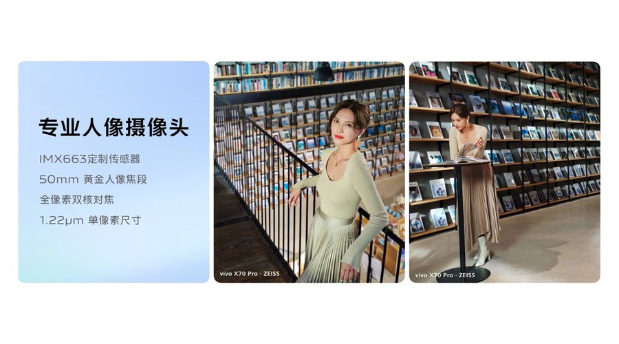 vivo X70系列全系标配50mm专业人像镜头,为定制的1200万像素IMX663传感器,单像素面积达到1.22μm,能够更从容应对白天、黑夜等拍摄场景,带来更好的人像效果。