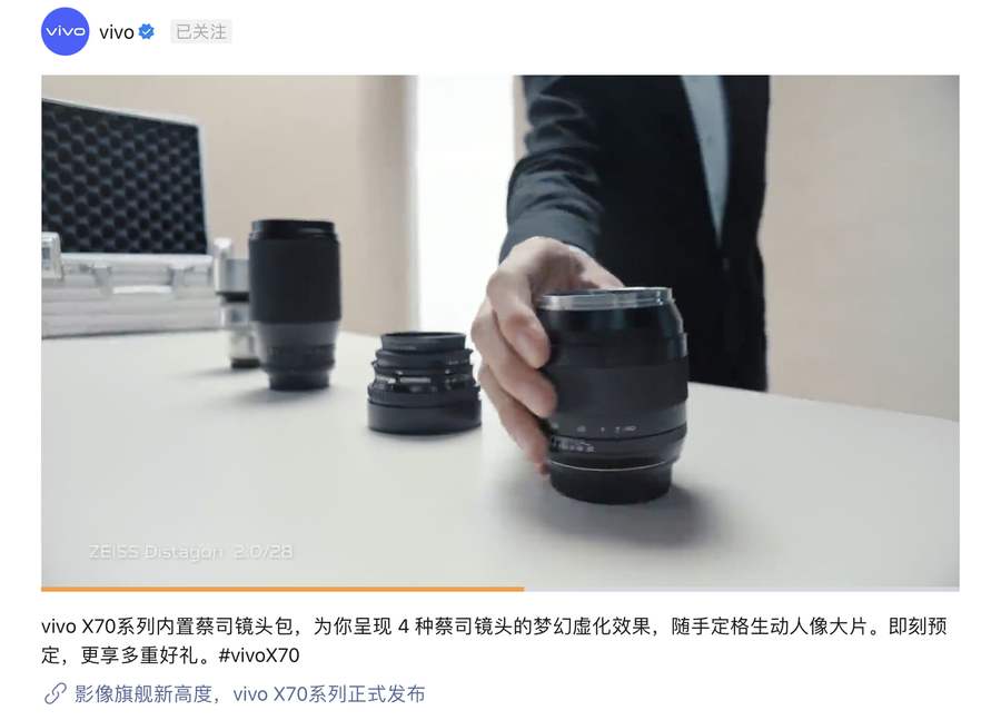 网友对vivo X70系列的评价也非常高,“人像与光斑都非常自然和谐,与真的蔡司镜头直出非常接近了!”“人像拍摄太顶了!” 黑豹乐队主唱张淇第一时间拿到vivo X70 Pro+,在微博平台分享了自己的“镜头包人像照”。