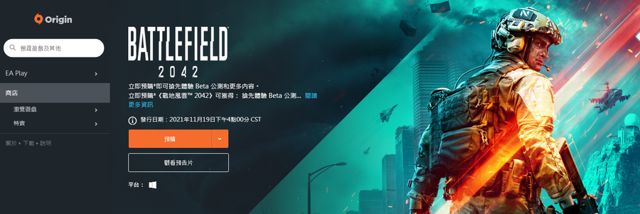 《战地2042》将登陆微软Xbox One,Xbox系列X | S平台,索尼PlayStation 4,PlayStation 5平台,以及PC平台。PC平台将于EA自家的Origin平台,以及Steam平台和Epic平台进行销售。