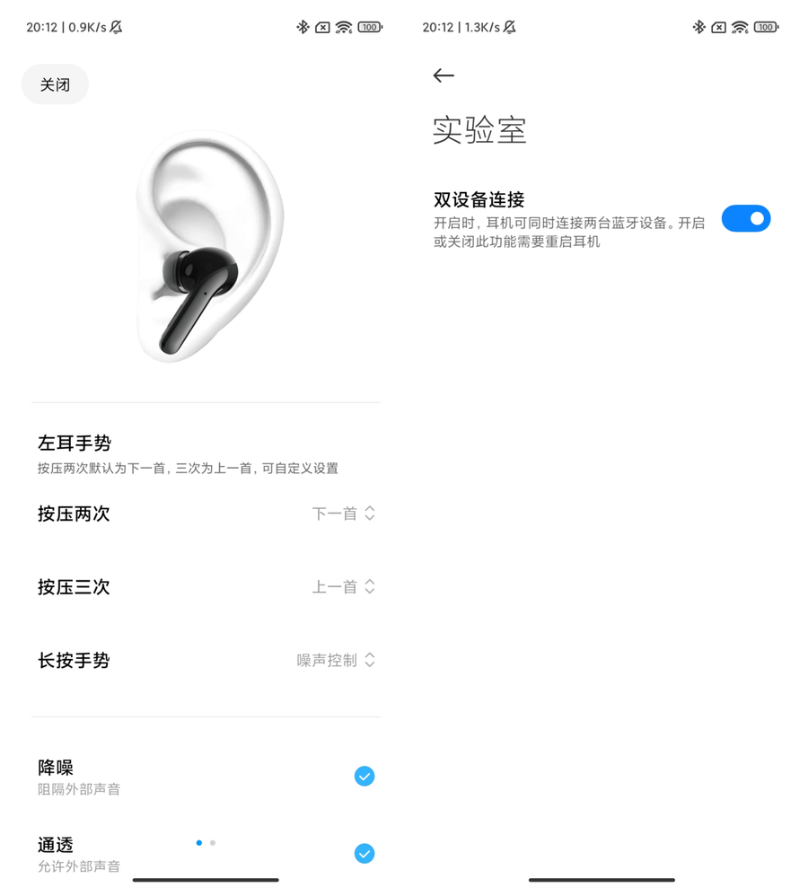 在小米手机上使用时,可以直接通过蓝牙设置对小米真无线降噪耳机3 Pro进行基础的功能设置,可以调节降噪模式、进行佩戴监测等等。小米真无线降噪耳机3 Pro支持手势操作,也可以通过按压、长按、滑动的方式来对耳机进行设置。