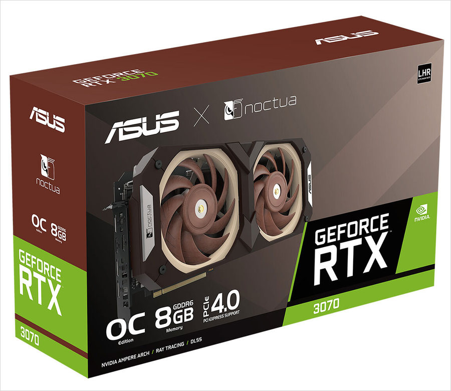 华硕联手著名散热器制造商猫头鹰Noctua,重磅推出了ASUS GeForce RTX 3070 Noctua Edition显卡,说直白点就是猫头鹰散热器版本的华硕RTX3070显卡。
