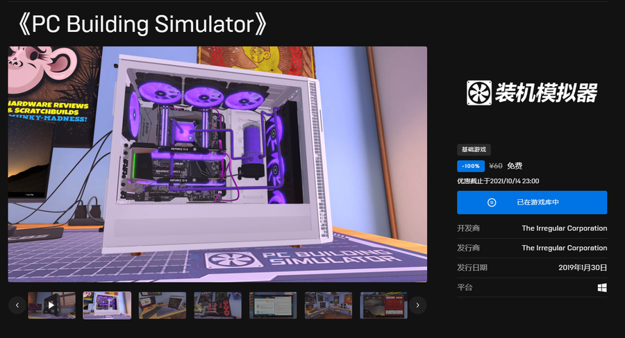 游戏喜加一,Epic 免费领取《装机模拟器》