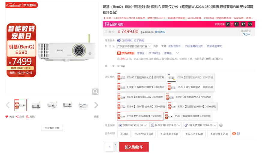 明基E590智能商务投影机目前正参与京东促销活动,优惠价只需7499元,晒单还有机会获赠100元E卡,想要购买的朋友不要错过这次活动了。