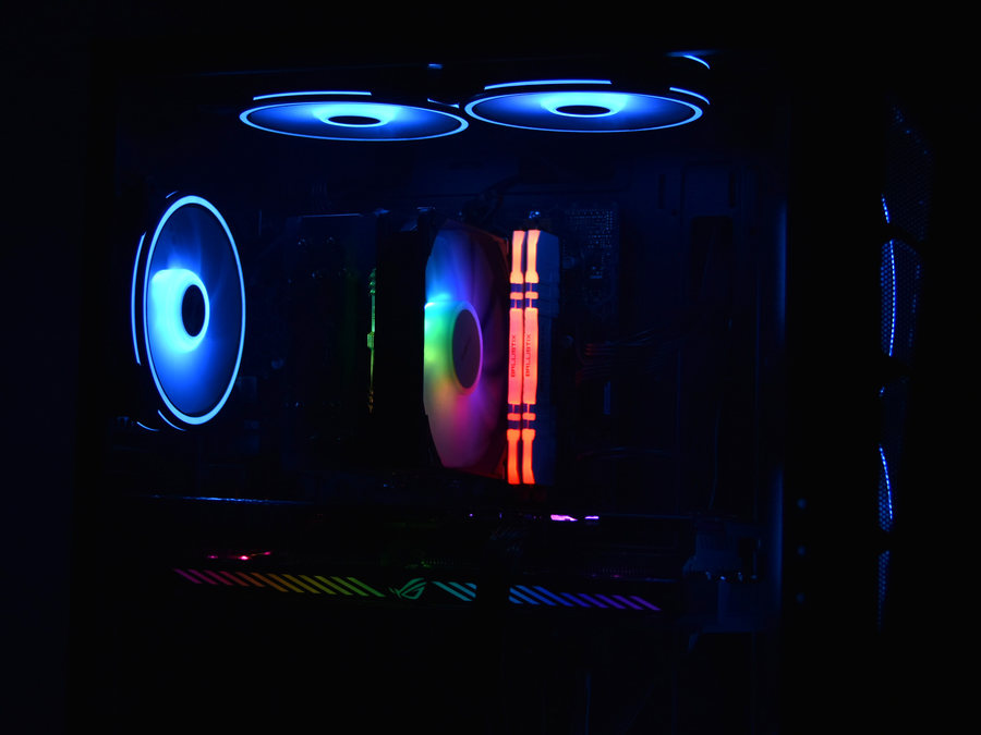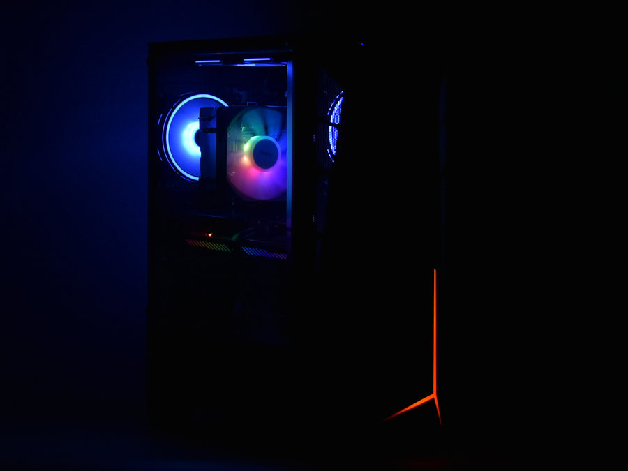 笔者评测的这款机器,为酷睿i5-10400F处理器搭配的是一台风冷散热器,配备有4根导热管。同时该散热器的风扇搭配了RGB灯效。