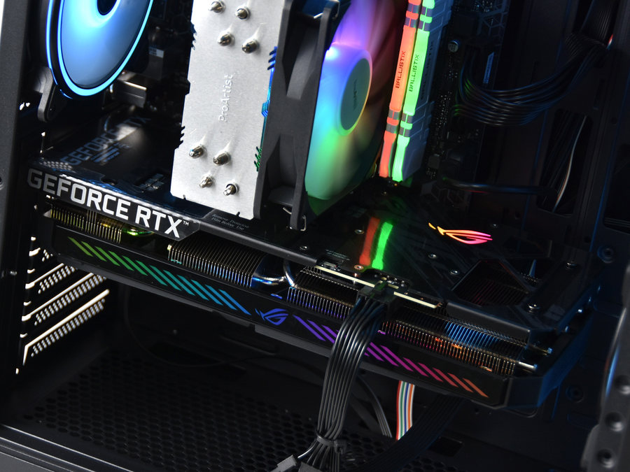 笔者评测的这款机器,它所搭配的这款华硕ROGRTX3060属于一款高频版RTX3060显卡,其GPU频率为1320MHz,Boost频率为1882MHz,显存频率为1875MHz(等效15000MHz)。