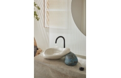 Rock.01延续了Arsham许多作品对时光致敬的概念,台盆部分由3D打印釉面陶瓷和手工浇灌黄铜所构成,将现代科技与科勒近148年的制造传统融为一体,体现了功能性和高雅艺术的完美结合。经过强压工艺锻造的黄铜“岩石”泛出怀旧的铜绿光泽,正传递了时光刻画的痕迹。