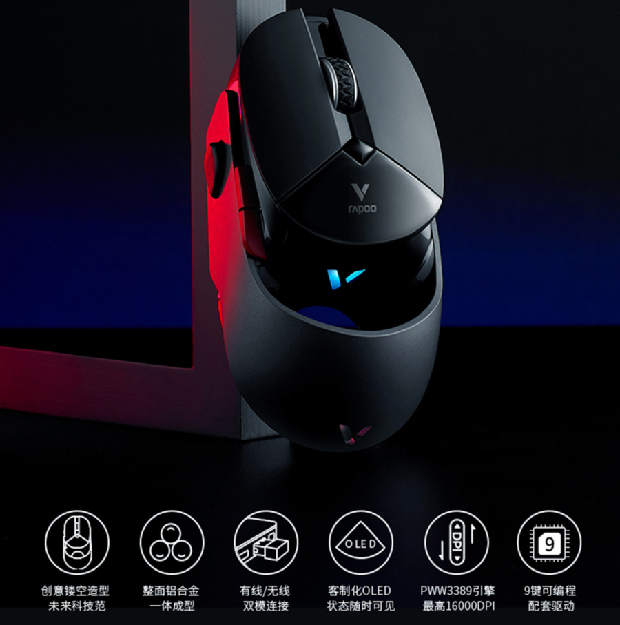 除了上面两款优惠幅度超大的产品,雷柏VT960无线游戏鼠标也迎来直降,到手价只需329元。雷柏VT960无线游戏鼠标采用独特的镂空设计,具有铝合金加持,配备OLED显示屏,可显示个性化内容,还搭载了约1680万色RGB背光系统,外观十分炫酷。