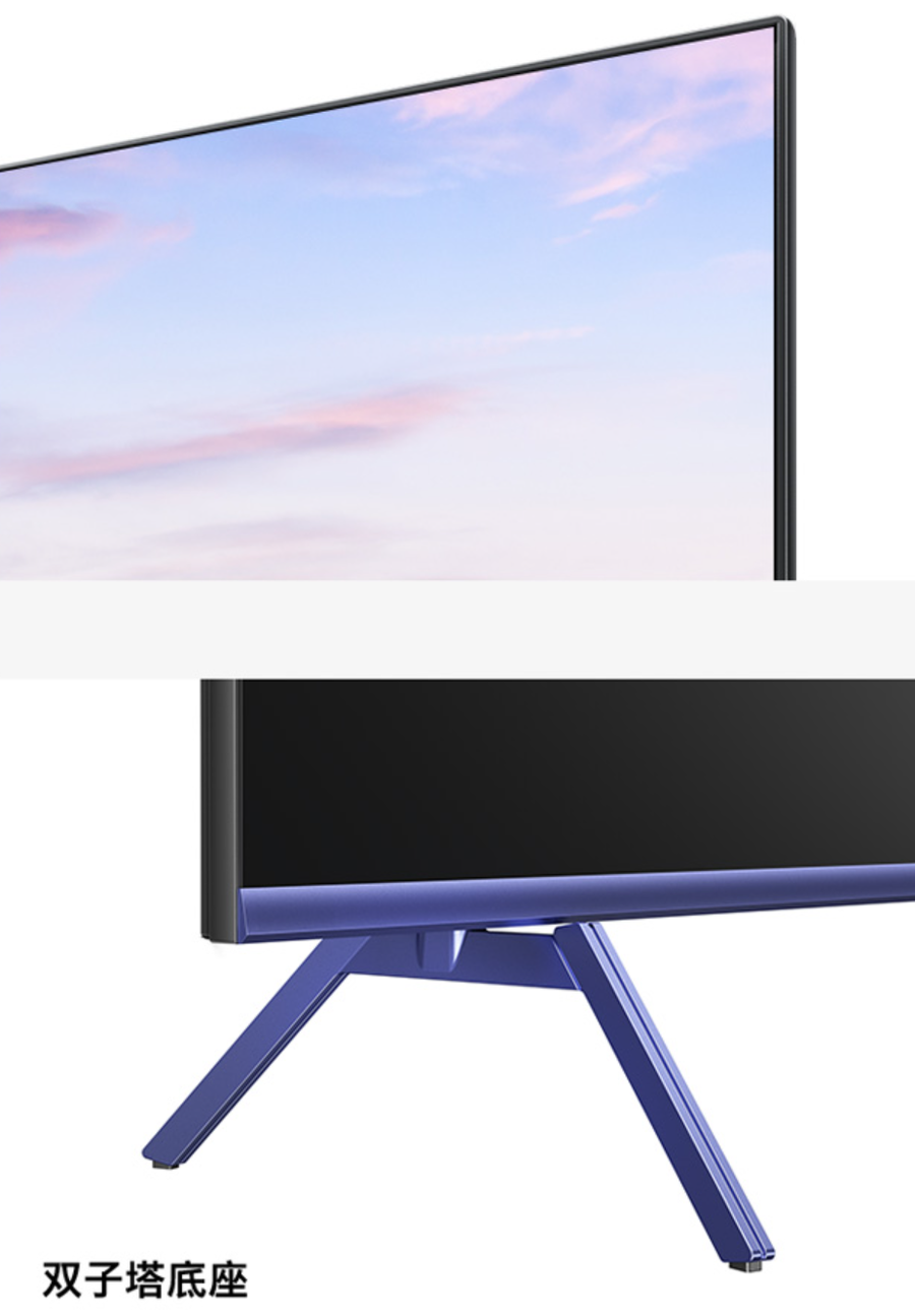 创维A20 Pro具有三向无边工艺加持,液晶屏体BM边仅5.9mm,有效降低边框对观影的影响。电视外观采用紫雾蓝设计,增加了产品的年轻属性,双子塔底座设计简约时尚。