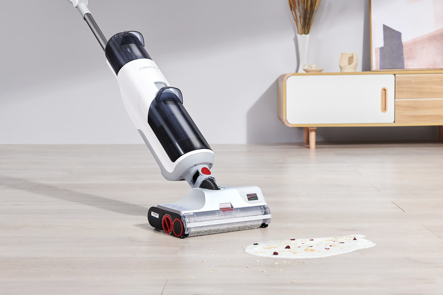 在以前干垃圾使用普通吸尘器或者扫地机器人就能搞定,但是如果是湿垃圾则需要先弯腰蹲下收拾干净,然后再使用拖布反复水洗才能清洁干净,而石头智能双刷洗地机U10就很好的解决了这一难题。因为除了双滚刷设计外,U10还具备850ml的清水箱,结合16个孔位的双滚刷,能够在清洗地面的过程中实时清洁滚刷,保证洗地时都使用清水循环进行清洗,不会产生二次污染,遇到牛奶、果汁等液体垃圾,还可以开启吸水模式,清洁与废水回收一次全搞定。