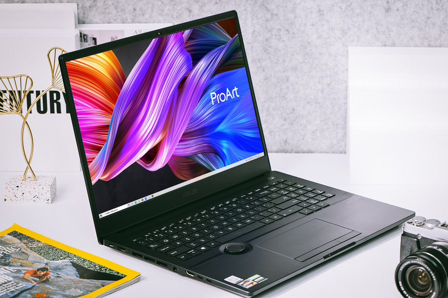 这款设计师笔记本搭配了一块16英寸、2560×1600分辨率、16:10比例、120Hz刷新率的大屏幕,显示效果相当细腻。根据华硕官方的介绍,这块大屏具备100% DCI-P3广色域、10bit色深以及500nits的最高亮度,通过了Pantone色彩认证、Vesa Display HDR 400认证以及Calman VERIFIED色彩认证,并且出厂经过色彩校准,色差△ E<1.5,让设计师们拿到笔记本电脑即可拥有出色的显示效果。