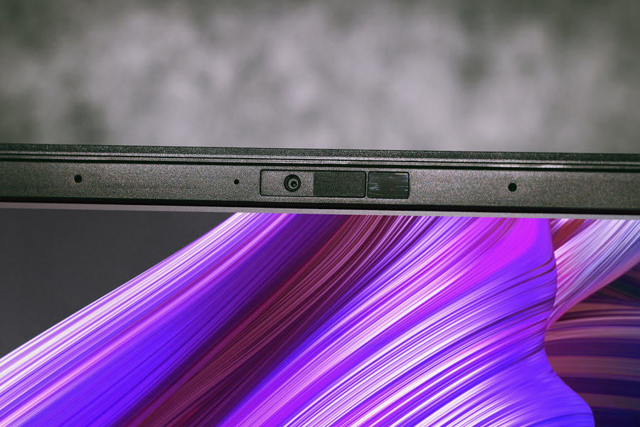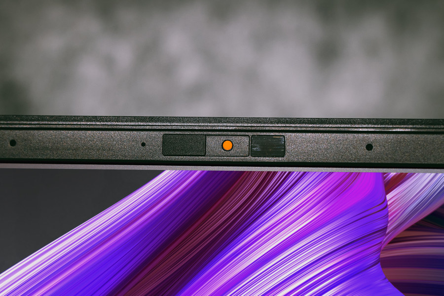 屏幕上边框配备有摄像头和麦克风识音口,便于会议视频等场景使用。特别是,它的摄像头配备了物理遮罩,闭合后可以100%保证不会通过摄像头泄露隐私。