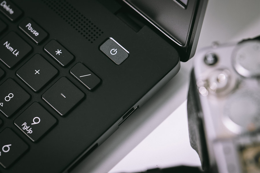 开机键位于键盘面右前方。同时,这枚开机键还集成了指纹识别器,设计师利用它可以疾速解锁电脑。