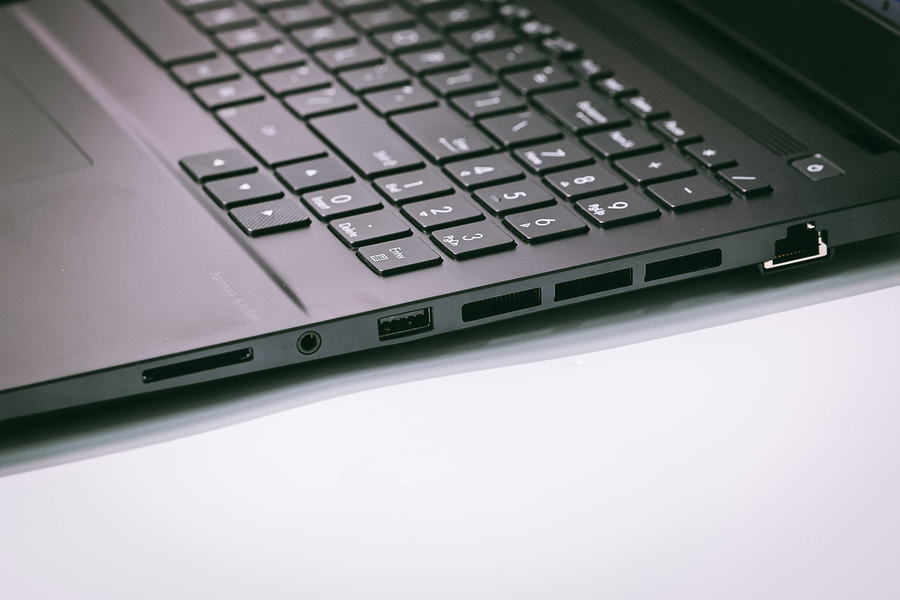 这款设计师笔记本的机身右侧设计了一个网线接口、一个USB 3.2 Gen 2接口、一个3.5mm耳机耳麦二合一接口、一个SD卡读卡器接口。其中,SD卡读卡器采用SD EXPRESS 7.0标准设计,支持高达985MB/s的传输速度,令设计师的摄影作品可以快速从SD卡里面传输到ProArt 创16里面。