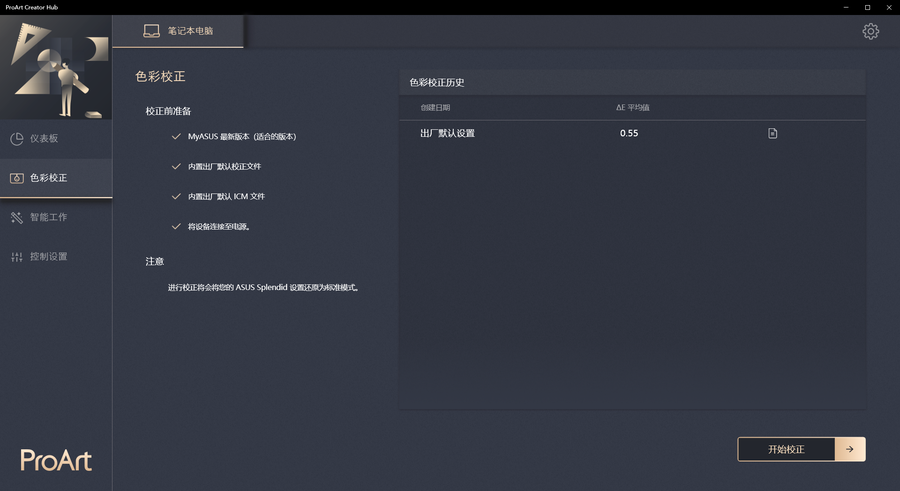 利用ProArt Creator Hub,可以对ProArt 创16这款设计师笔记本进行屏幕的色彩校正。