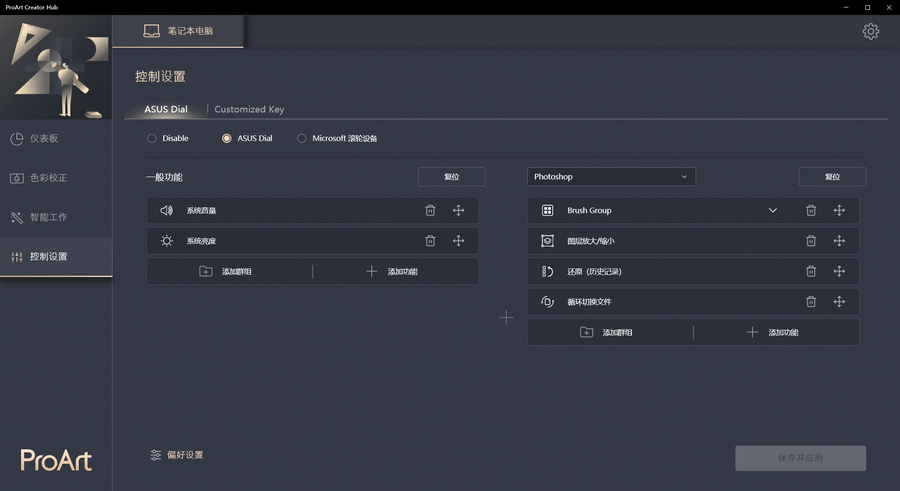 利用ProArt Creator Hub,可以进行一些控制偏好的设置。