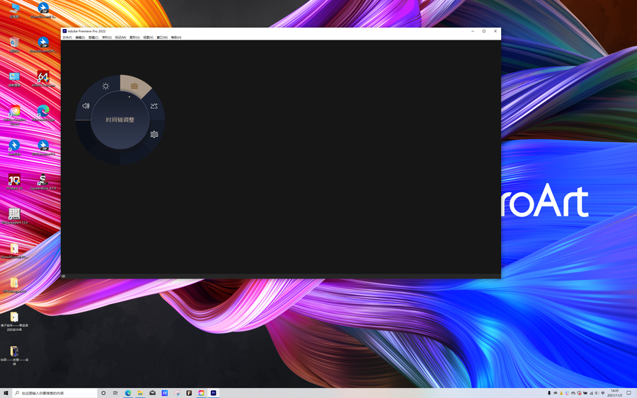 打开Adobe Premiere Pro 2022,利用ASUS Dial物理创意旋钮可以调节屏幕亮度、音量、时间轴调整、时间轴缩放、音频轨道高度这五个方面。