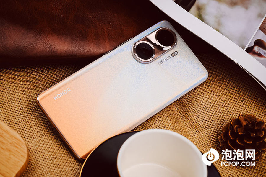 荣耀60 Pro的后置摄像头排列相当具有辨识度,且进行了用心的打磨。后置的三颗摄像头位于同一个中轴线上,而超广角镜头和主摄也被金属圆环包围,进行了上下排布,两个金属圆环的中间为一颗200万像素的景深镜头。从横向和纵向两个角度观察,荣耀60 Pro的后置摄像头模组都是非常对称,进一步展现了对称美学。在此之外,荣耀60 Pro整体的镜头模组还覆盖了一块2.5D的曲面镜头玻璃,带来了更加圆润的过渡和视觉效果 。