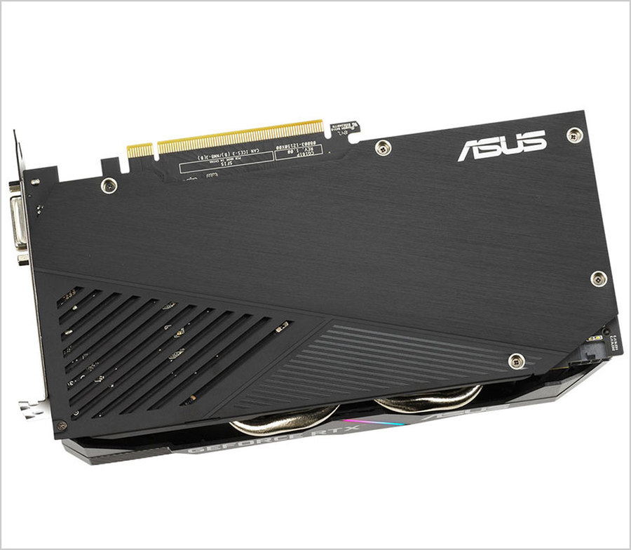 华硕DUAL系列RTX2060 12GB显卡采用双风扇、双热管的散热设计,拥有单8pin供电接口。视频接口提供了一个DisplayPort