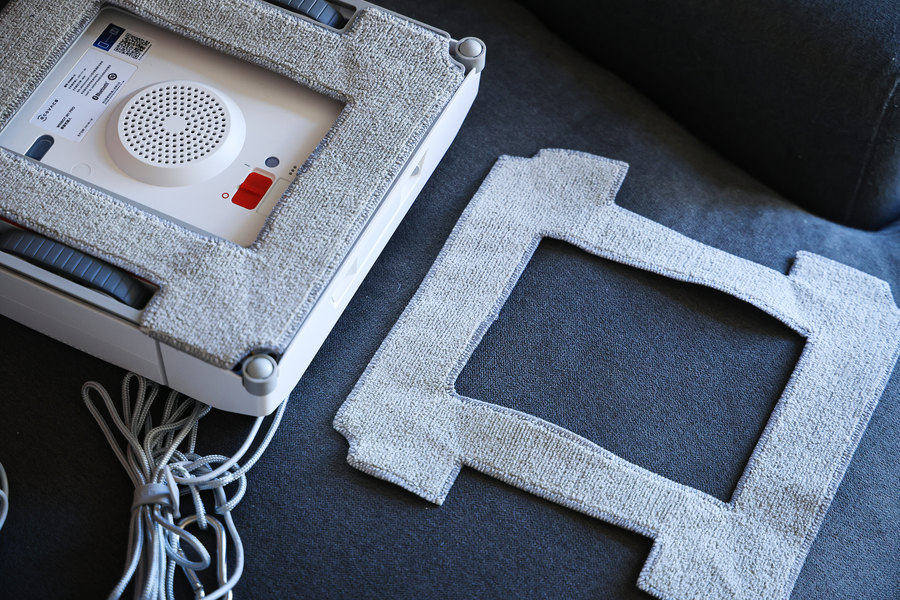 这次科沃斯WINBOT W1 Pro一共拥有两个“工”字型的抹布,有效防止抹布贴错造成的密封性不足而引发安全问题;一体式结构,基布为特种纱线,相较于传统多层复合结构,稳定性高,不易变形。另外,基材部分正反面都植入了超细纤维,不仅擦的干净,而且可以正反面使用,延长单抹布使用市场,而高锁水率可以能保证抹布不会干擦,清洁效果更佳。