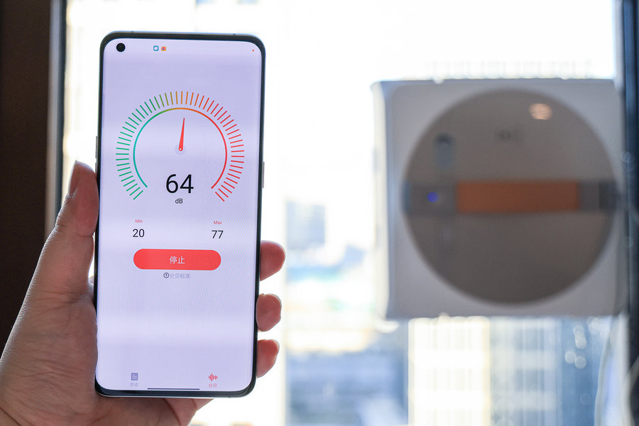 在使用科沃斯WINBOT W1 Pro时会有一定的声响,总体给我的感觉是和扫地机器人差不多,如果是外窗清洁的话可以忽略不计。而在封闭室内进行内窗清洁时,靠近科沃斯WINBOT W1 Pro的分贝数值最高也只在65db左右,60db就是正常交谈的声音,所以并不会让我感到有明显的噪音或者不适。