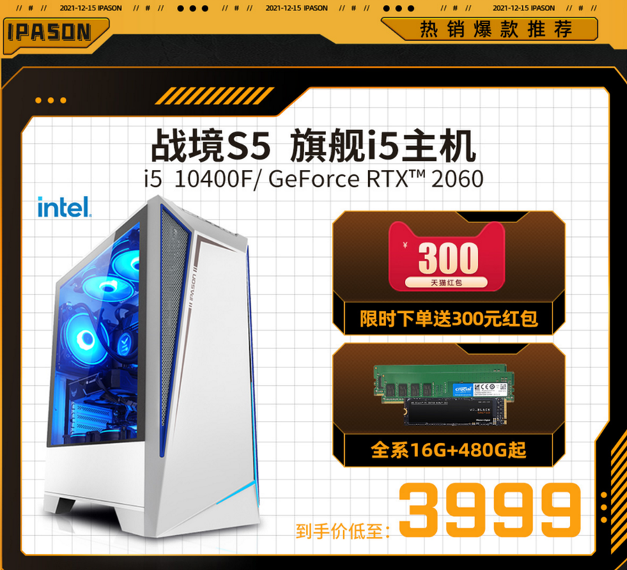 攀升战境S5 i5 10400F/1650/1660S/2060/3060游戏主机>>购买链接