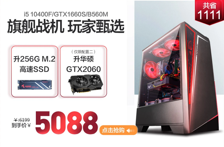 武极武神i5 10400F/11400F/GTX1660S游戏主机>>购买链接