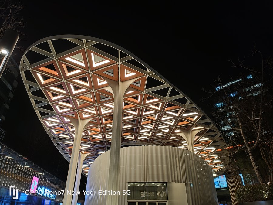 在OPPO Reno7红丝绒新年特别版在拍摄夜景时同样能还原出真实的夜晚氛围,在夜景模式下,对高光压制得比较到位,暗部细节也得到很好的保留,整体画面十分通透,观感出色。