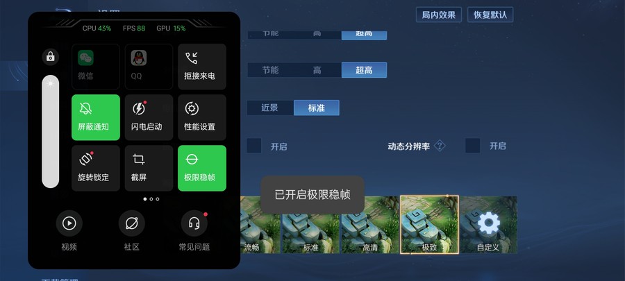 《王者荣耀》支持超高帧率模式以及开启极致画质