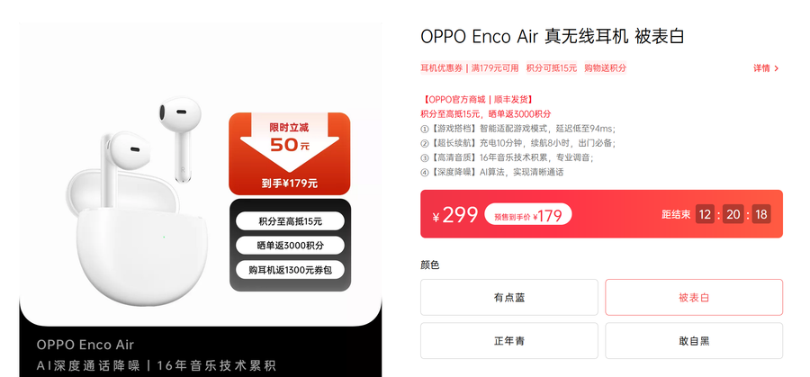 对于入门级的真无线耳机,佩戴舒适度、音质表现、无线连接这些方面都是非常值得关注的,OPPO Enco Air在这些方面都有相当不错的表现,轻松满足大部分场景的使用需求,还有时尚潮流的外观设计等特性,搭配目前只需179元的到手价,收获“年度优选产品”奖项也是实至名归。