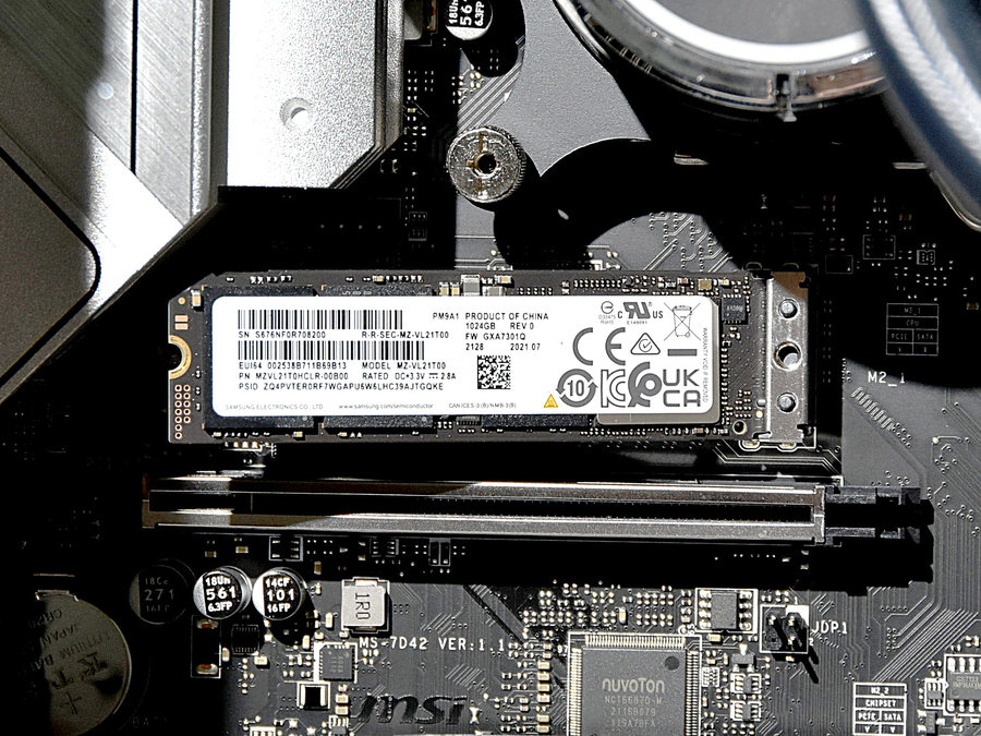 这款水冷游戏主机搭配的1TB M.2固态硬盘的传输模式为PCIe4.0 x4。