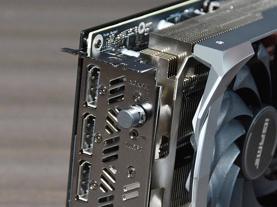 这款显卡的输出接口挡板上面还设计有一枚一键超频按钮,按下即可轻松获得更好的性能释放,让超频也有“仪式感”。