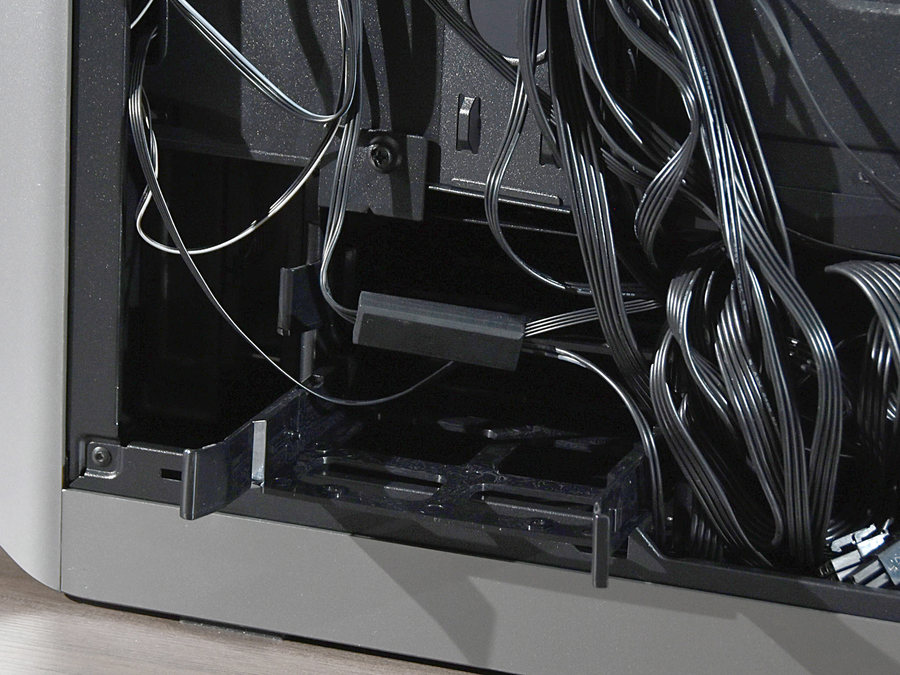 这款水冷游戏主机采用了新一代Ice Storm分区散热方案。电源仓和硬盘仓均是独立的,并且采用了背板走线设计,能够有效提高机箱内部的美观程度与通风散热性能。