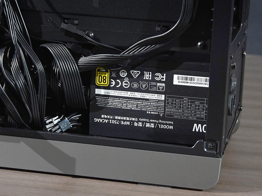 电源为酷冷至尊出品的,额定功率为750W,通过了80PLUS金牌认证。