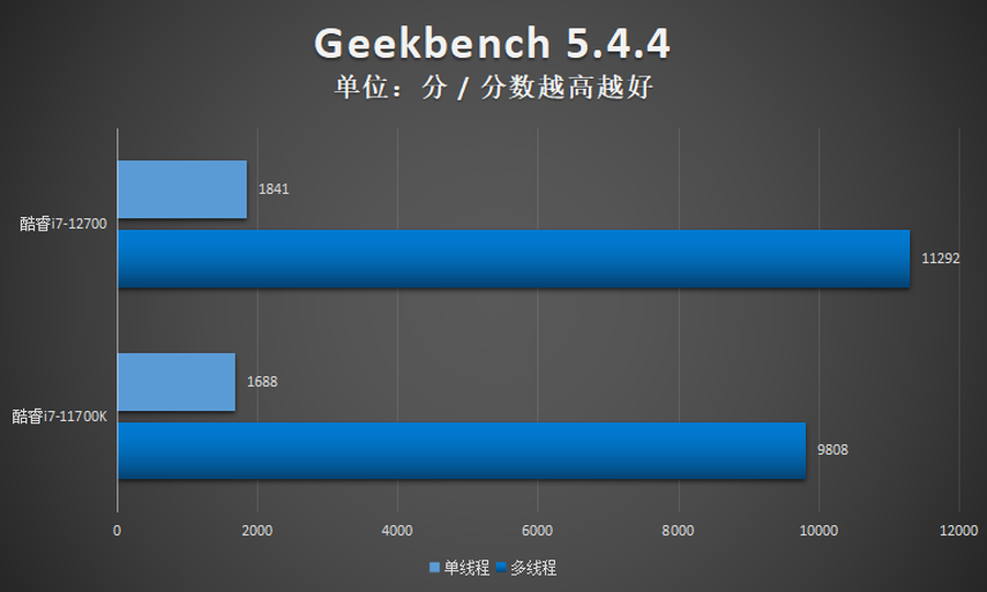 对比11代酷睿i7-11700K,12代酷睿i7-12700无论单核性能还是全核心性能均是大优的。不得不说,12代酷睿真的很强!