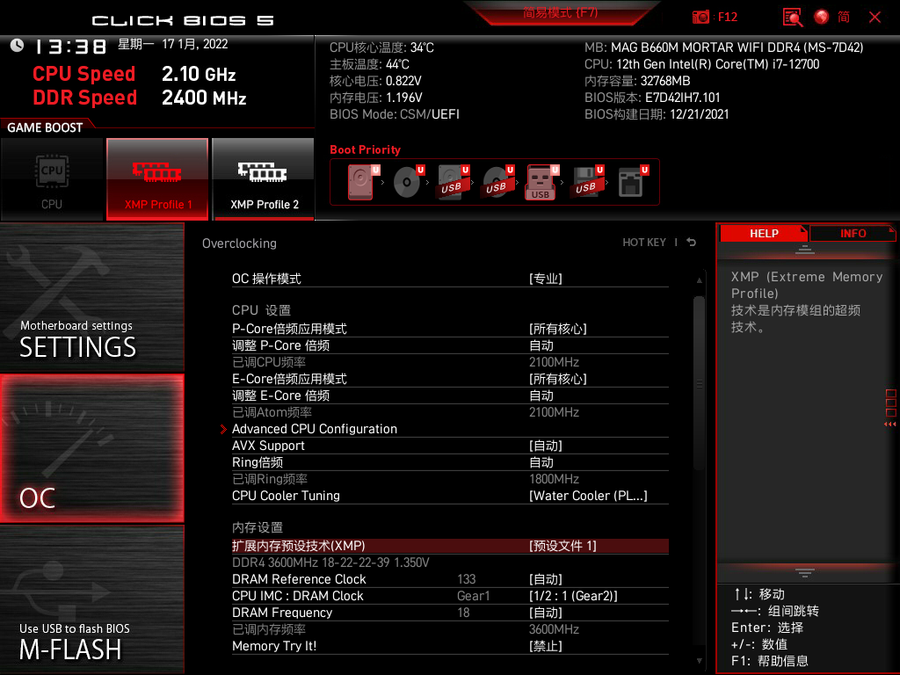 笔者评测的这款机器采用的是微星B660芯片组主板。