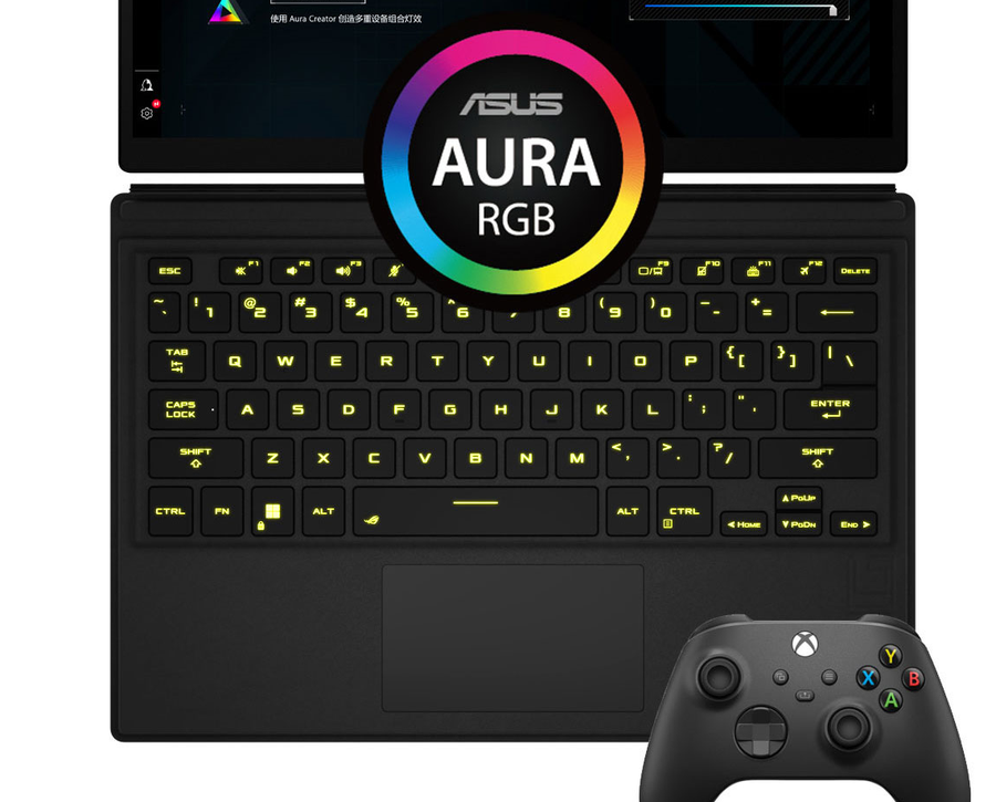 ROG 幻X也配备了磁吸式可拆卸RGB背光键盘,虽然是可拆卸的设计,但是手感也非常出色,拥有1.7mm的键程,并且实现全键无冲突,并且支持神光同步,继承了ROG一贯的出色体验。