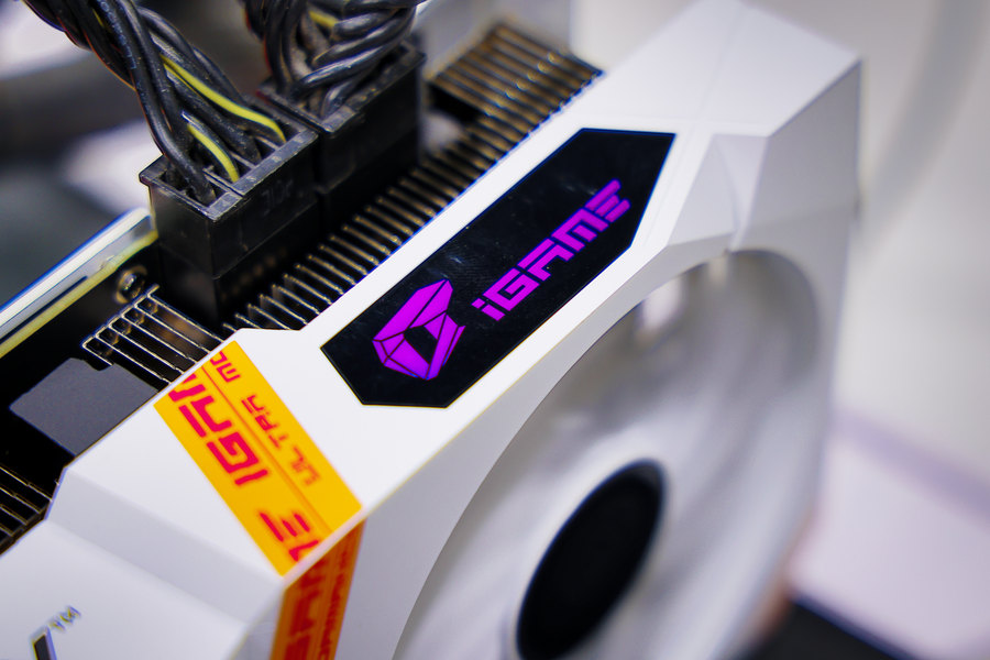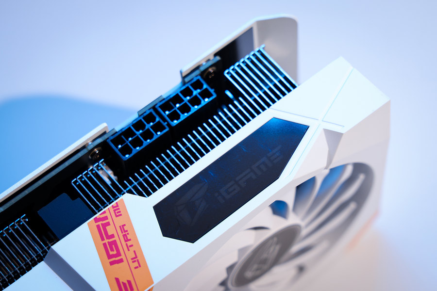 散热器顶部设计有可发光的iGame LOGO,通过iGame Center控制软件能够对灯效进行调节。