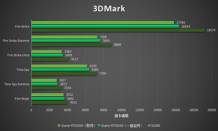 从 3DMark 基准测试的成绩来看,RTX 3050与RTX 2060相比存在一定的性能差距。