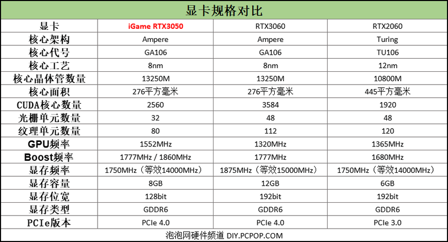 RTX3050:GA106显示核心,2560个CUDA