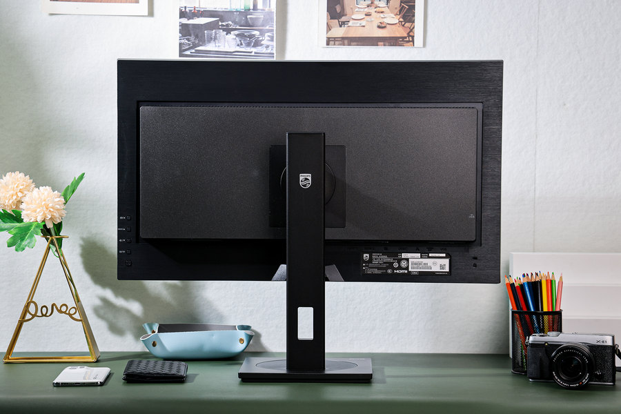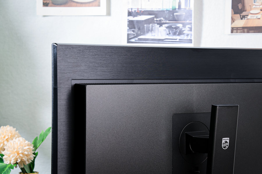 飞利浦279P1FR显示器背面的外观也经过了精心的设计,尤其是金属拉丝的设计,让这款显示器从背面看也非常的精致。