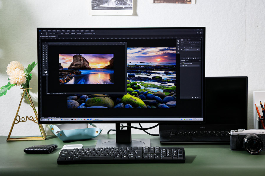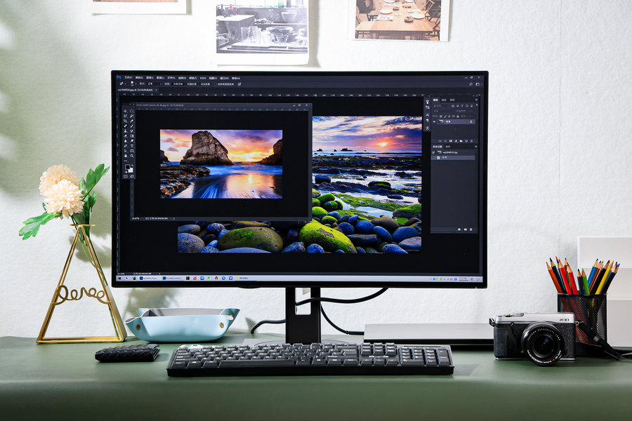 在显示画质方面,飞利浦279P1FR搭载LGD原厂AH-IPS面板,具备10.7亿色彩显示以及支持HDR400,搭配4K分辨率非常适合在后期修图时放大缩小照片。比如我现在使用的佳能EOS R5全画幅微单相机,拍摄的照片达到5000万像素,使用飞利浦279P1FR显示器在Photoshop上打开原图能更好的展现照片的细节。