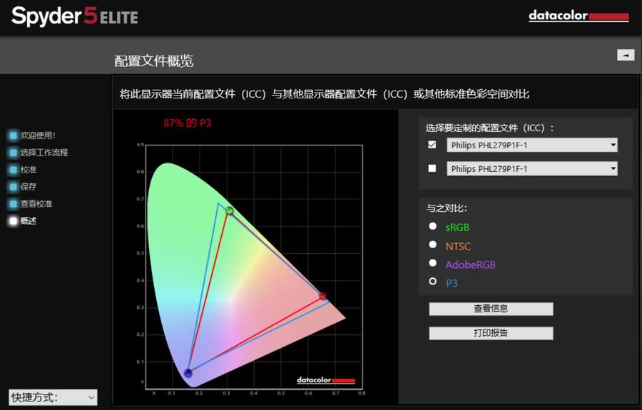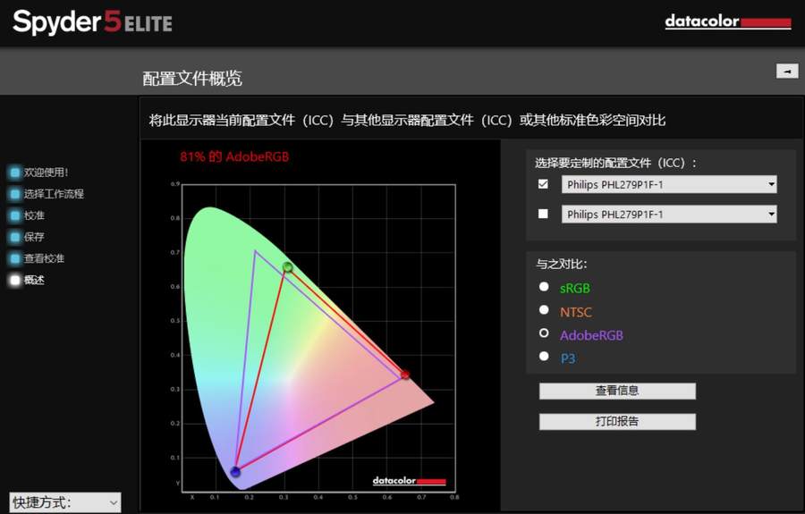 接下来,我们使用红蜘蛛校色仪对这款飞利浦279P1FR显示器进行检测。