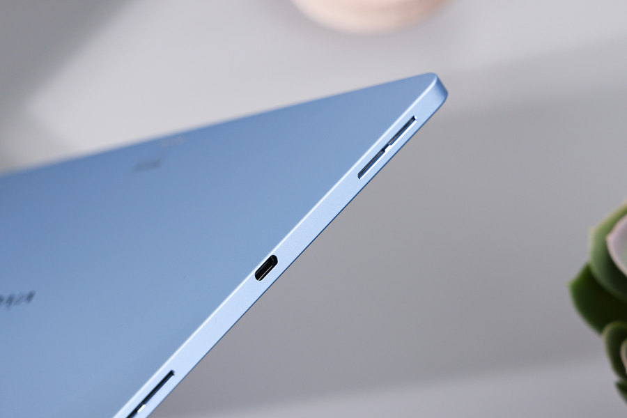 首先在配色上,vivo Pad有深空灰与天蓝色两种颜色可选,家庭或者商务使用都很合适;其次,这款产品为⼀体化金属机身,使用了⼀整块航空铝合金材料,整体无论是看上去还是摸上去都非常有质感,而且自主研发创新型谐振腔天线隐藏在全金属机身之下,兼顾高强度和轻薄设计之余也拥有更好的信号表现。