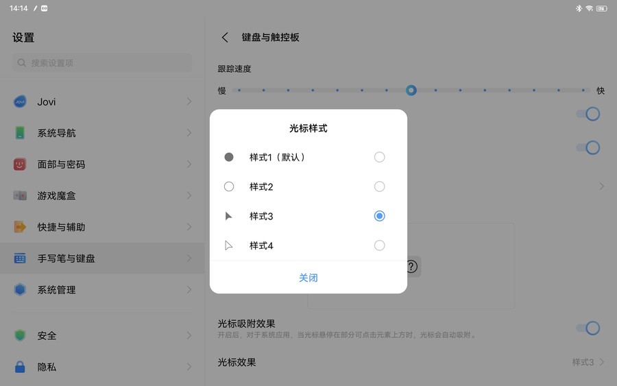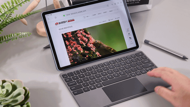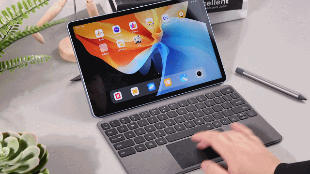 基本上笔记本电脑能实现的触控板操作,这款智能触控键盘也同样能完成。除了基础的双指上下滑动页面、双指放大/缩小页面外,还有更多便利的触控功能,如三指点触触摸板可返回上一页、三指向上滑回到桌面等。另外,绝大部分安卓平板产品的外接蓝牙键盘由于不具备触摸板,所以选择图标或者项目时需要通过手指点触屏幕来完成,而vivo Pad在搭配上智能触控键盘后可以模拟电脑上的光标。默认设置下平板显示为圆点触控板光标,但是也可从设置菜单中切换为我们更熟悉的箭头光标。同时,在编辑文本时,光标也会自动变成“I”的样式,完美兼容触控和传统光标。