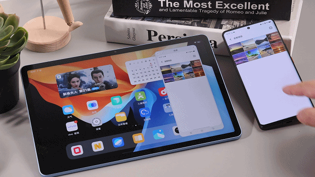 好在近几年各大厂商在互联技术上有不小的突破,就比如这款vivo Pad平板所搭载的OriginOS HD,对安卓平板系统进行深度的全面优化,多设备协同真正让这款平板成为一个生产力和创造力的工具,因为在我们随时随地拿起vivo Pad的时候,可以与我们使用的其它设备,比如说手机和平板协同,又或者两个设备里的内容直接同步,甚至可实现⼀碰跨屏协同,打通多设备的壁垒。